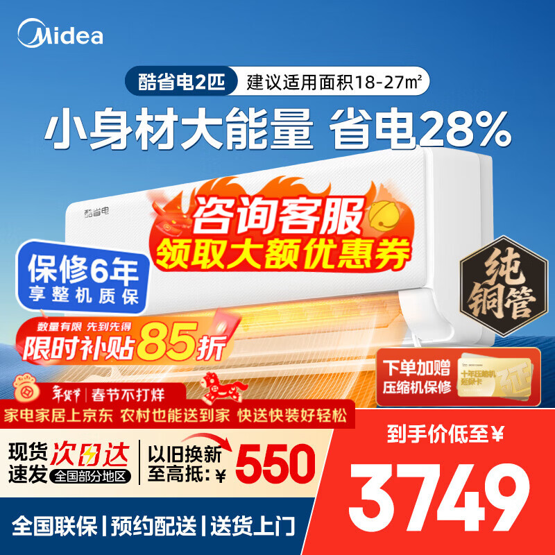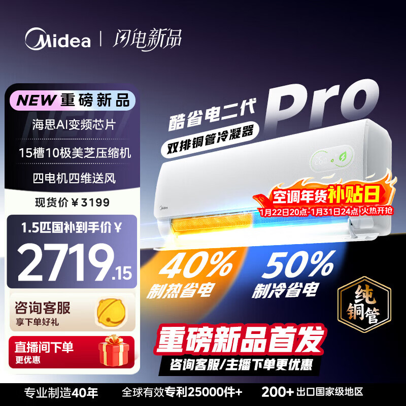 美的(Midea)酷省电 爆款推荐 空调挂机 大1.5匹新一级能效全直流变频节能低噪音防直吹 以旧换新 国家补贴 酷省电二代 pro一级能效 大1.5匹 26年新款