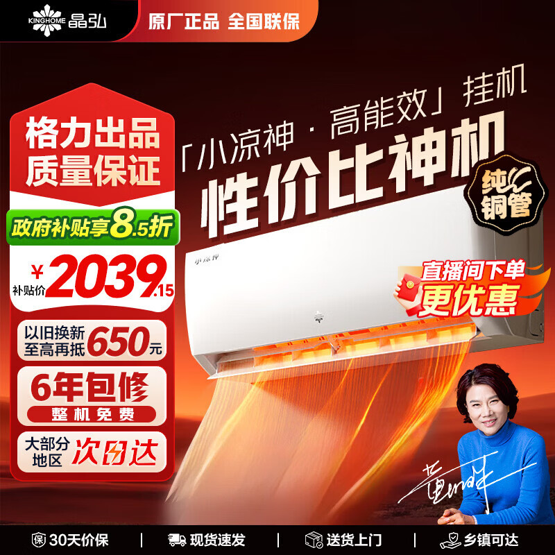 格力出品 【国家补贴】晶弘空调 小凉神1.5匹/大一匹 新1级能效 制冷暖变频 壁挂式卧室 省电挂机 小凉神 1.5匹 【性价比神机】