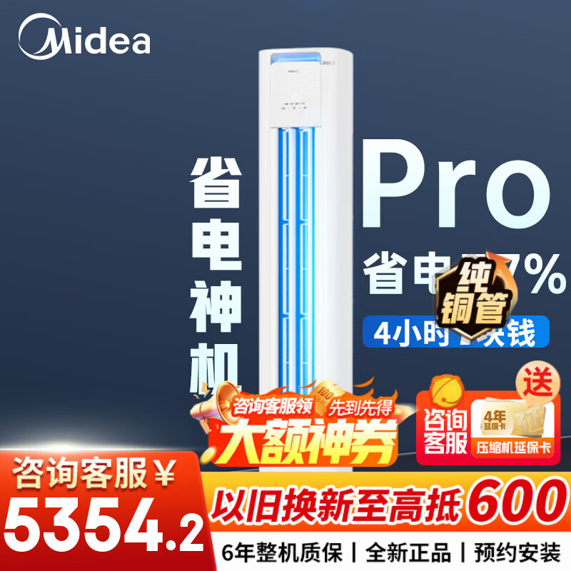 美的(Midea)空调立式大3匹 酷省电柜机升级版 超一级能效 变频节能 冷暖两用 客厅家用大风量空调柜式WiFi智控 酷省电Pro 一级能效 大3匹 pro升级款