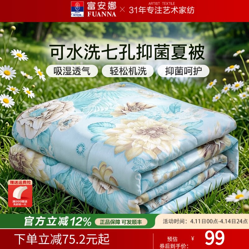 富安娜空调被夏季可机洗夏被薄被宿舍单人学生被子被芯儿童夏凉被