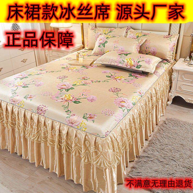 床裙款冰丝席凉席三件套床罩式空调软席可机洗水洗折叠夏天季双人