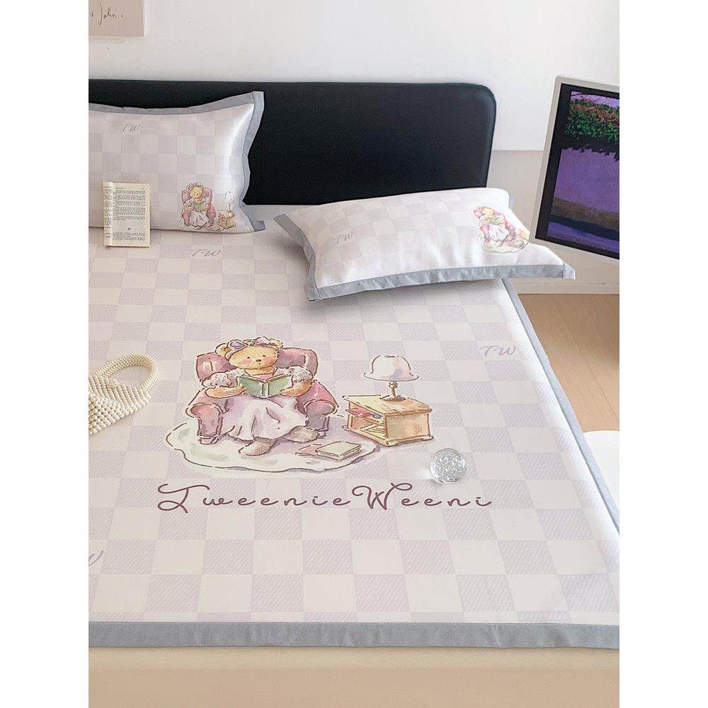 小绵羊酷爽印花冰丝席凉席三件套可折叠单双人空调席1.5m冰丝席子