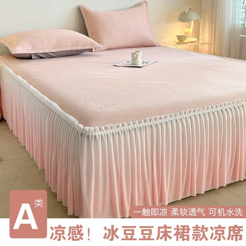 花边床裙款冰豆豆凉席三件套夏天2025新款凉感空调席子软席公主风