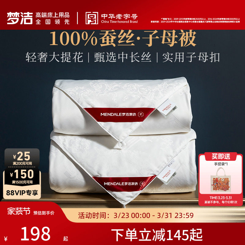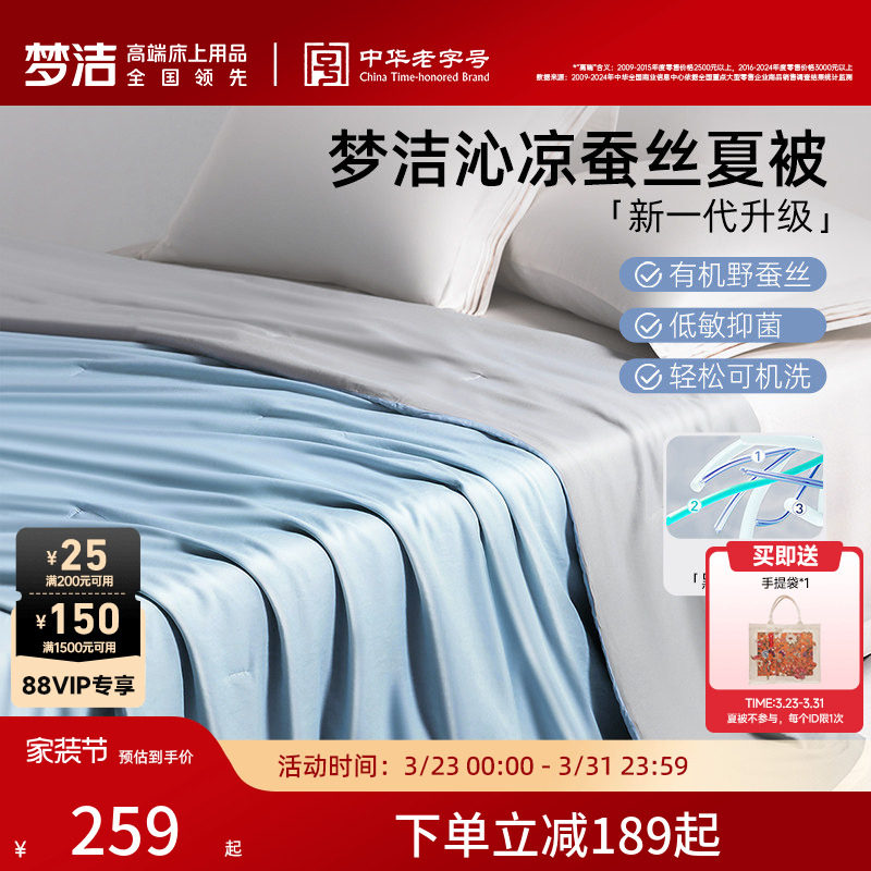梦洁家纺100蚕丝被子夏凉被空调被被子春秋被芯凉感沁凉夏被抗菌