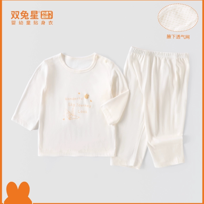 双兔星26夏婴儿棉莫超轻棉空调服男女宝宝超薄八分袖九分裤家居服
