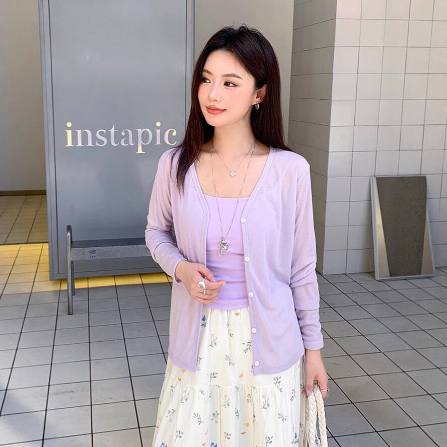 2026年春夏新款薄款圆领显瘦罩衫空调衫长袖针织防晒衫女T恤上衣