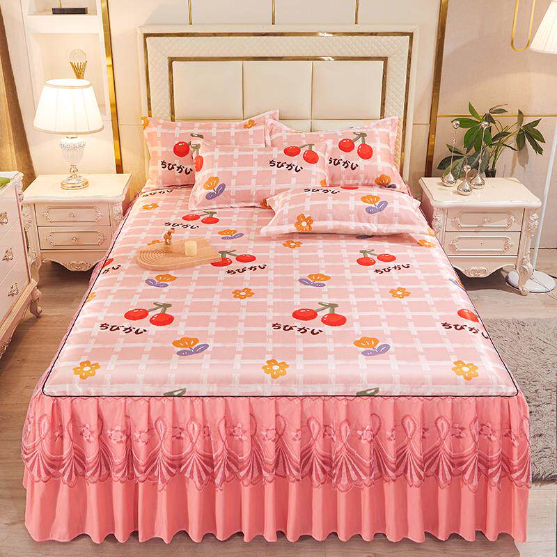 夏季欧式冰丝凉席三件套床裙款可机洗折叠夏天蕾丝床罩空调软席子