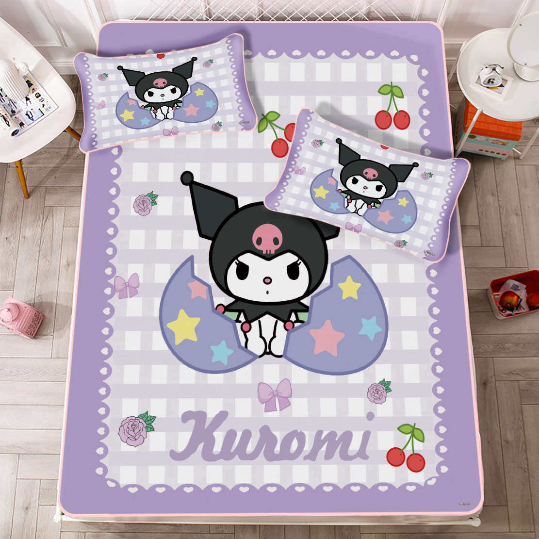 夏季冰丝空调席子床笠款家用凉感冰豆豆凉席防滑床罩三件套可水洗