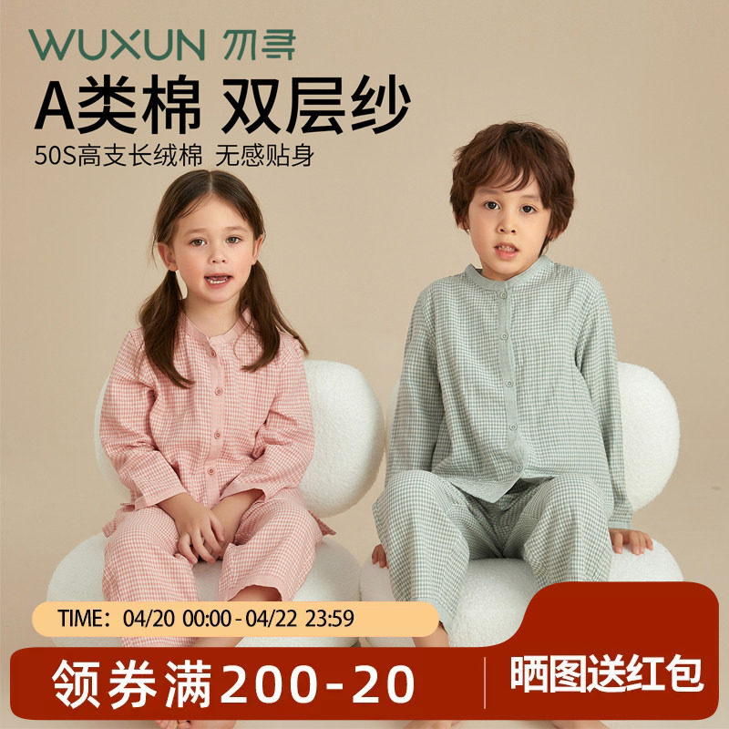 斑马日记3032儿童纯棉睡衣双层纱布薄款男女童空调服宝宝家居服