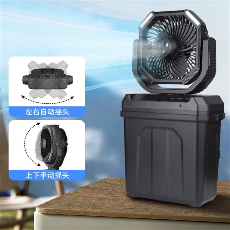 户外风扇野营帐篷喷雾便携式大风力充电冰雾扇空调扇摇头钓鱼降温