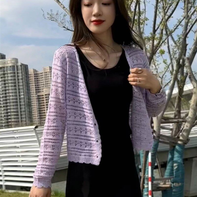 宽松针织防晒开衫女2026新款夏季吊带外搭薄款空调衫镂空薄纱外套