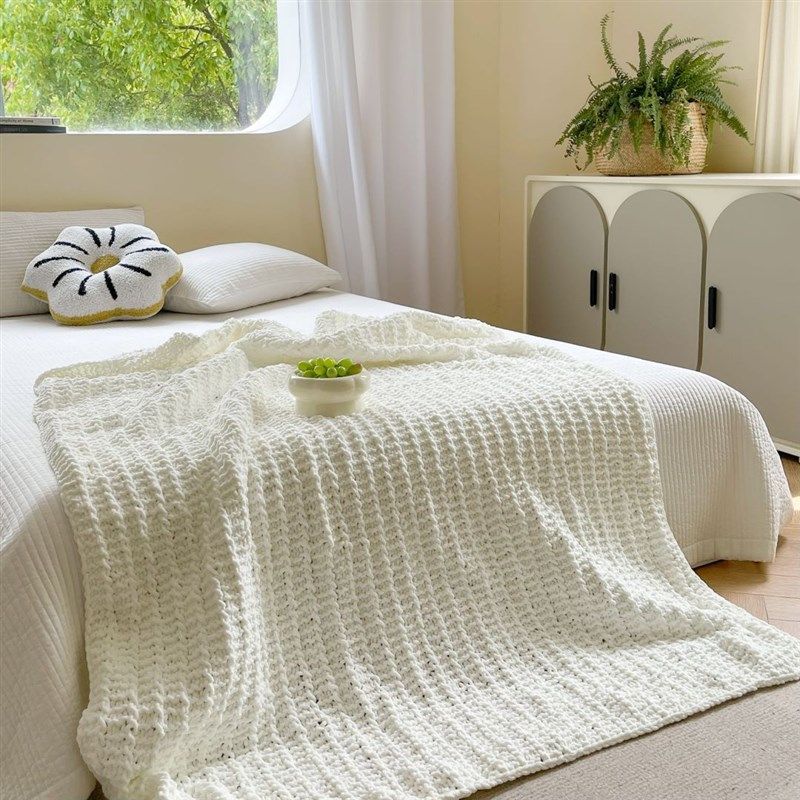 新款手工纯色麻花毯沙发盖毯办公室午睡毯子休闲空调小毛毯新款手