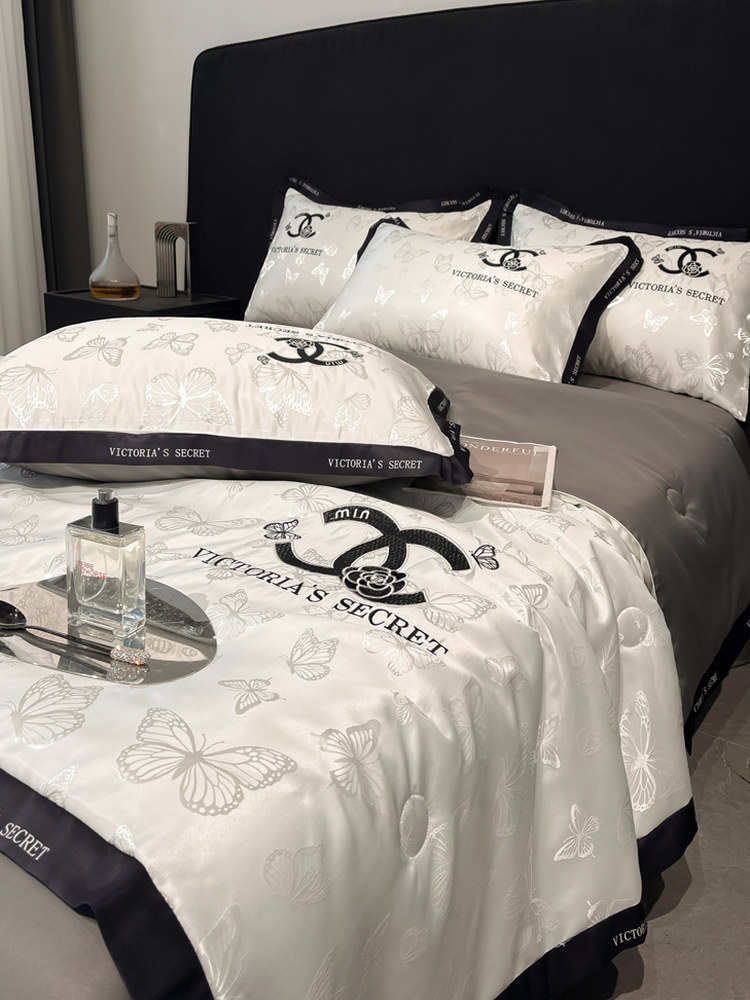 A类绣花冰丝夏凉被四件套空调被夏季凉感被可机水洗夏被薄款床单4