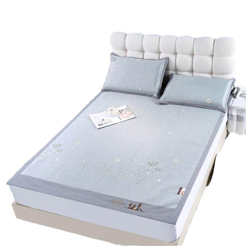 简约纯色轻奢刺绣冰丝席三件套夏季裸睡空调凉席轻奢凉席可折叠软