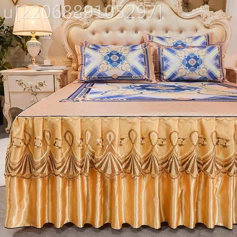 夏季裸睡冰豆垫床裙三件套公主风格蕾丝纯色冷空调软垫