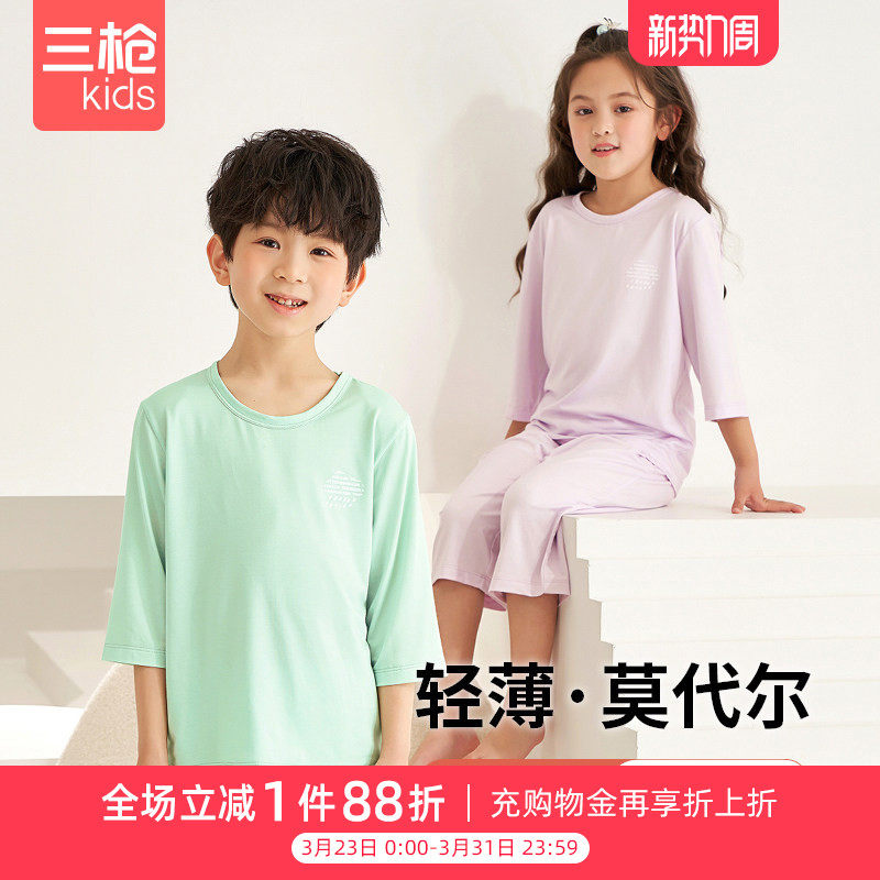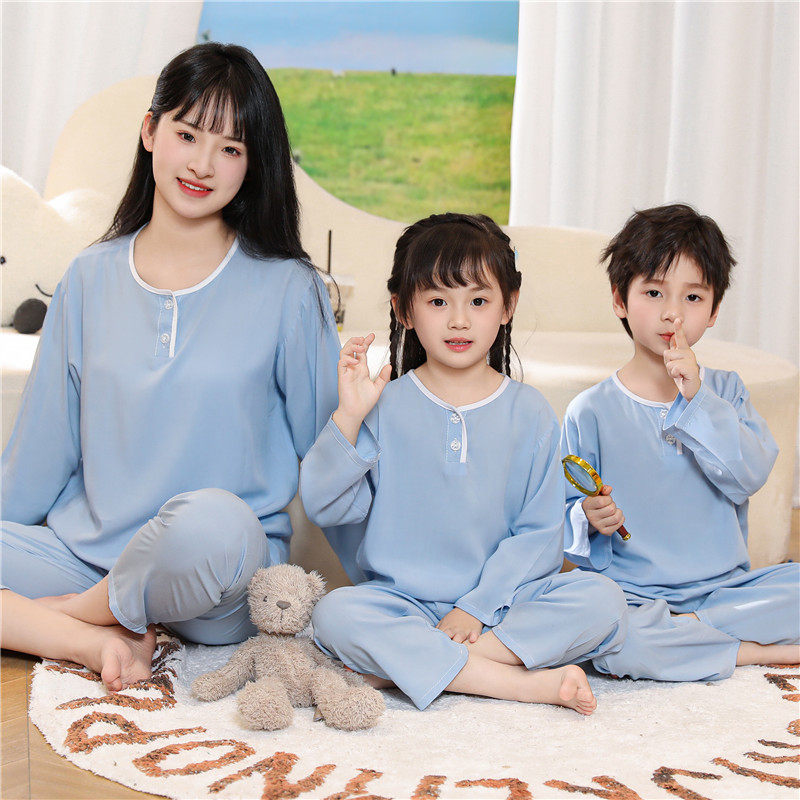 夏季儿童棉绸睡衣男孩男童薄款空调服家居服女童宝宝短袖绵绸套装