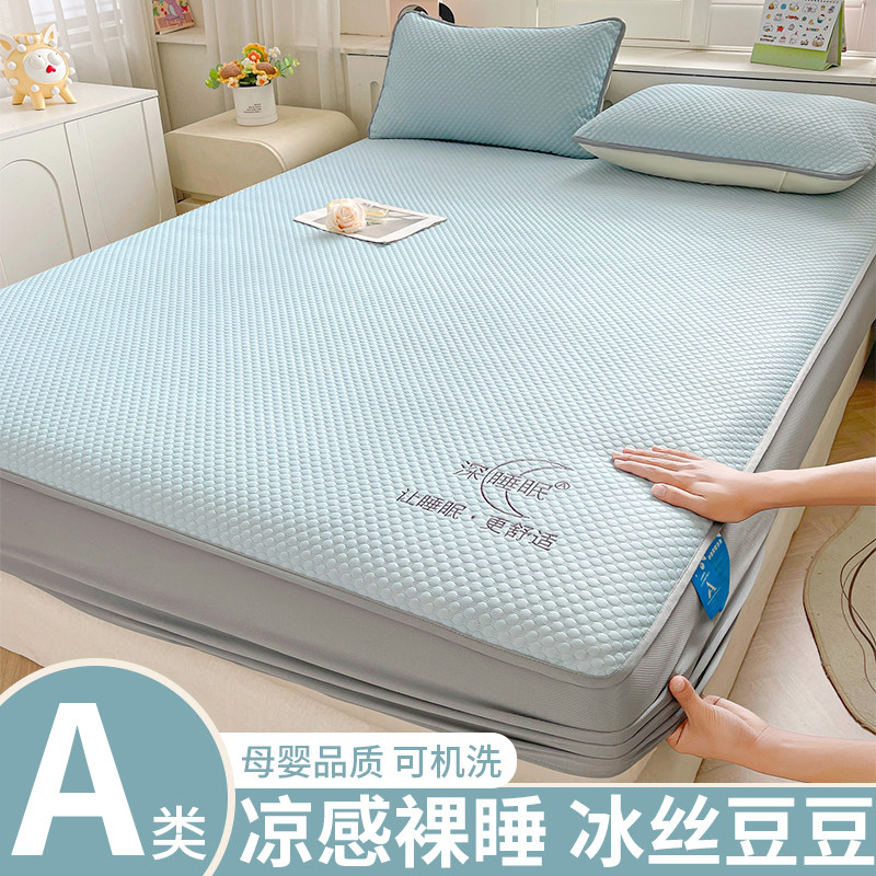 2026年新款夏季冰丝床笠罩凉席冰豆豆床罩三件套凉感空调席可水洗