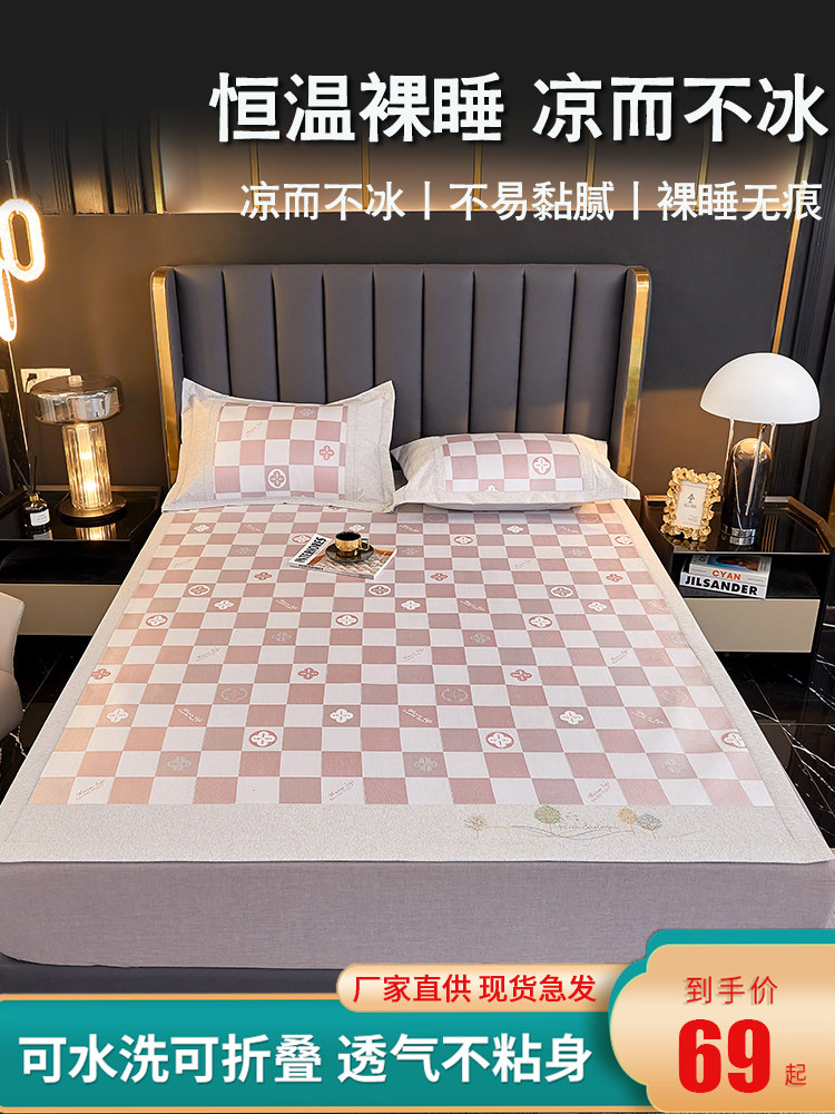 高奢A类抗菌提花冰丝凉席三件z套床笠款夏季凉感可水洗空调软席子