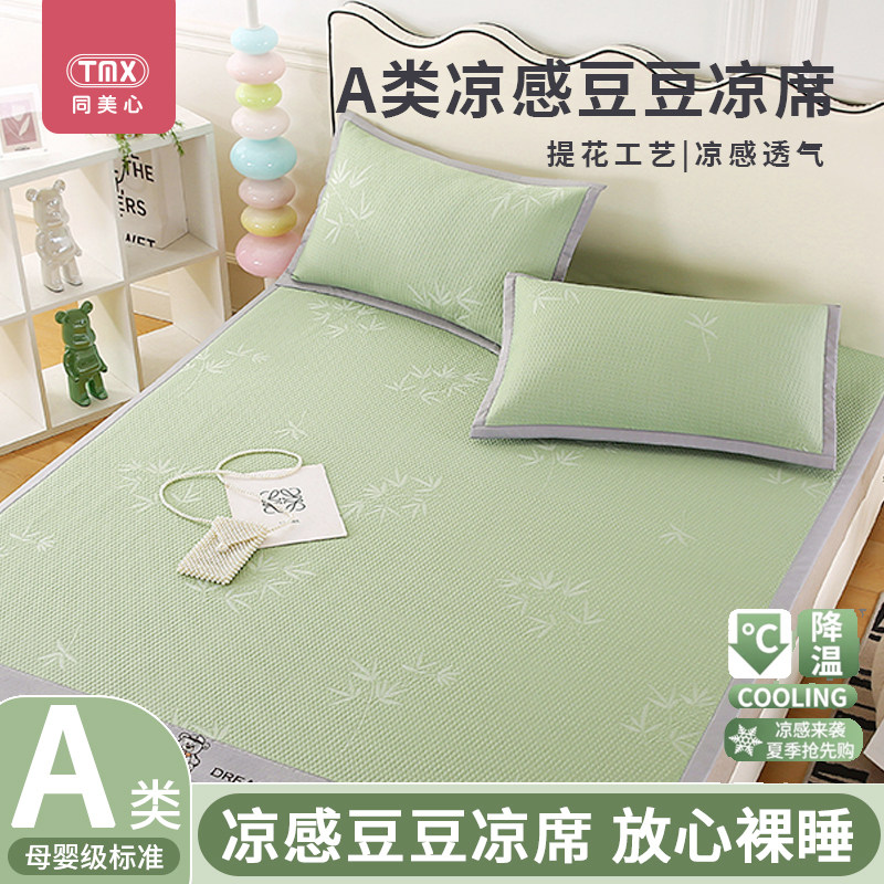 母婴级冰豆豆凉席三件套夏季可机水洗冰丝席床单夏天空调软席