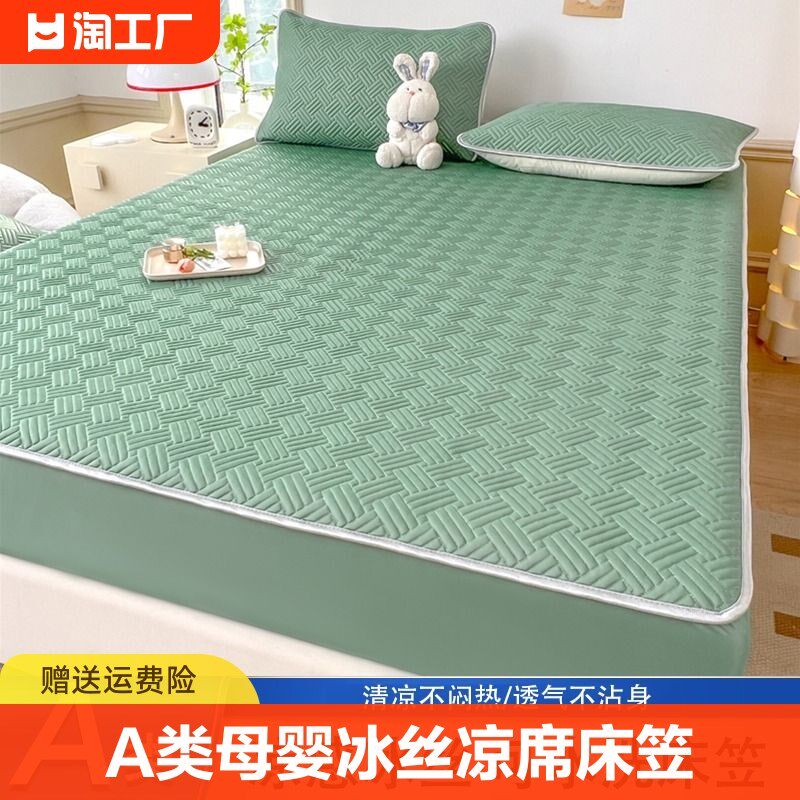 A类母婴凉席冰丝席床笠三件套双人家用可水洗床罩折叠空调软席子
