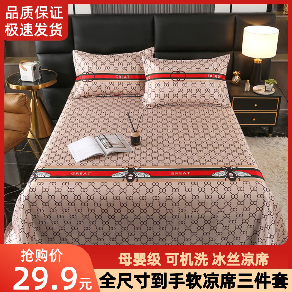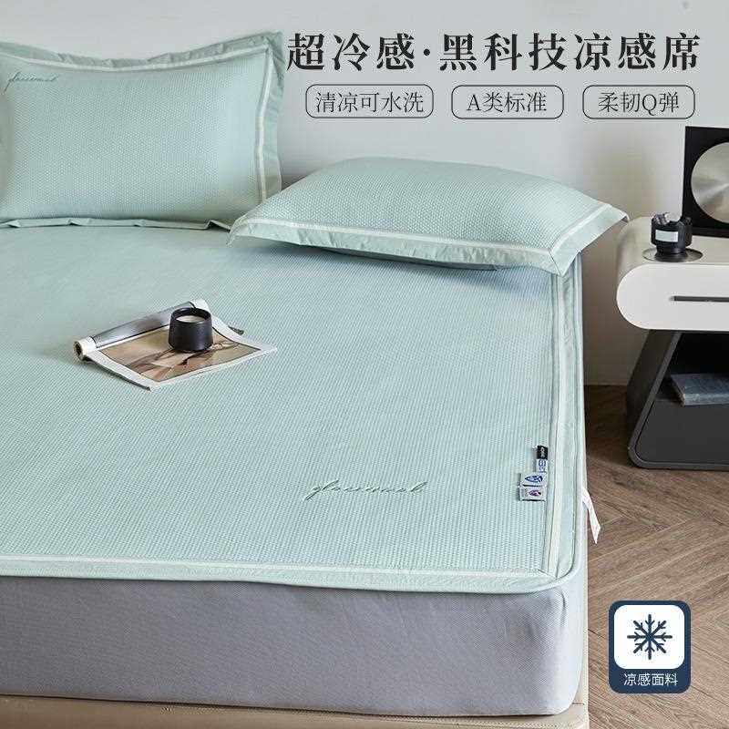 夏季凉感冰丝凉席三件套宿舍单人家用可水洗夏天双人空调软席子