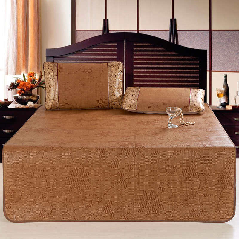 夏季冰藤凉席三件套冰凉刺绣可机洗柔软折叠藤席家用空调软席子