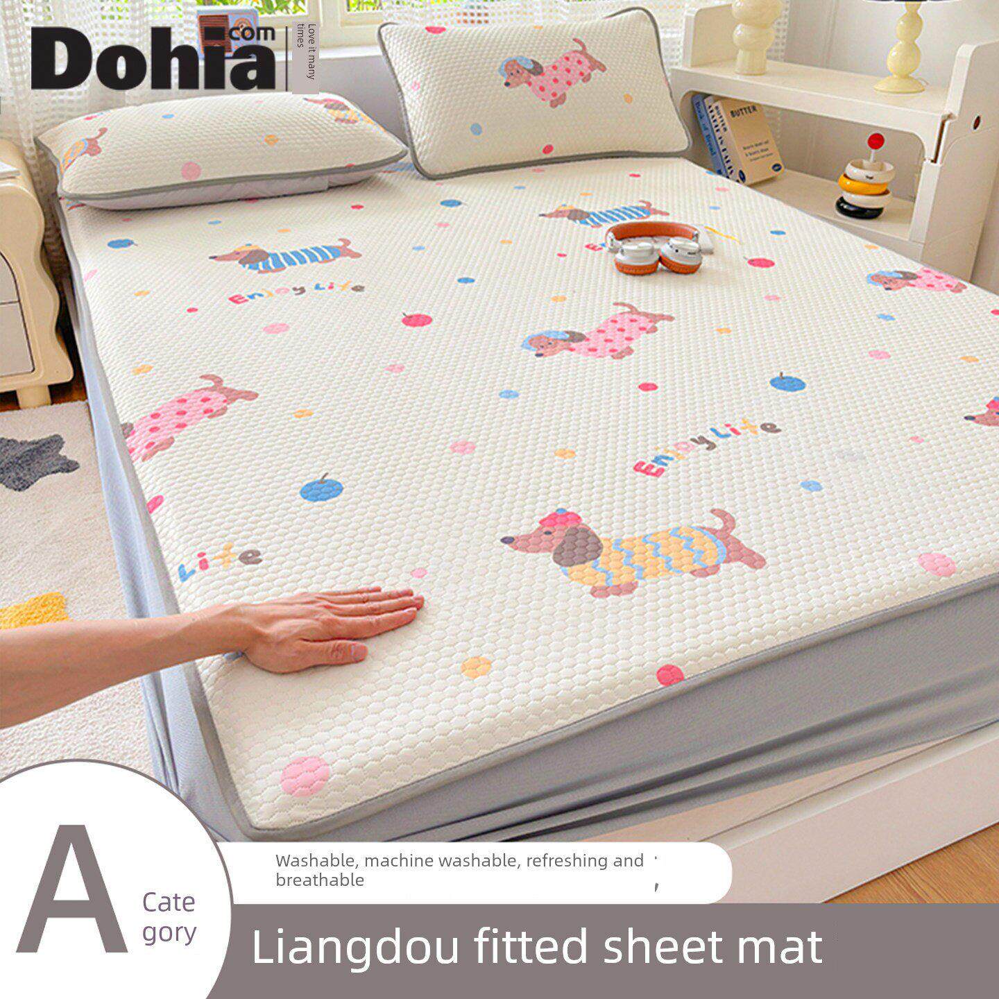 夏季清凉冰豆垫k三件套可折叠可洗夏季裸睡床裙空调软垫床上用品