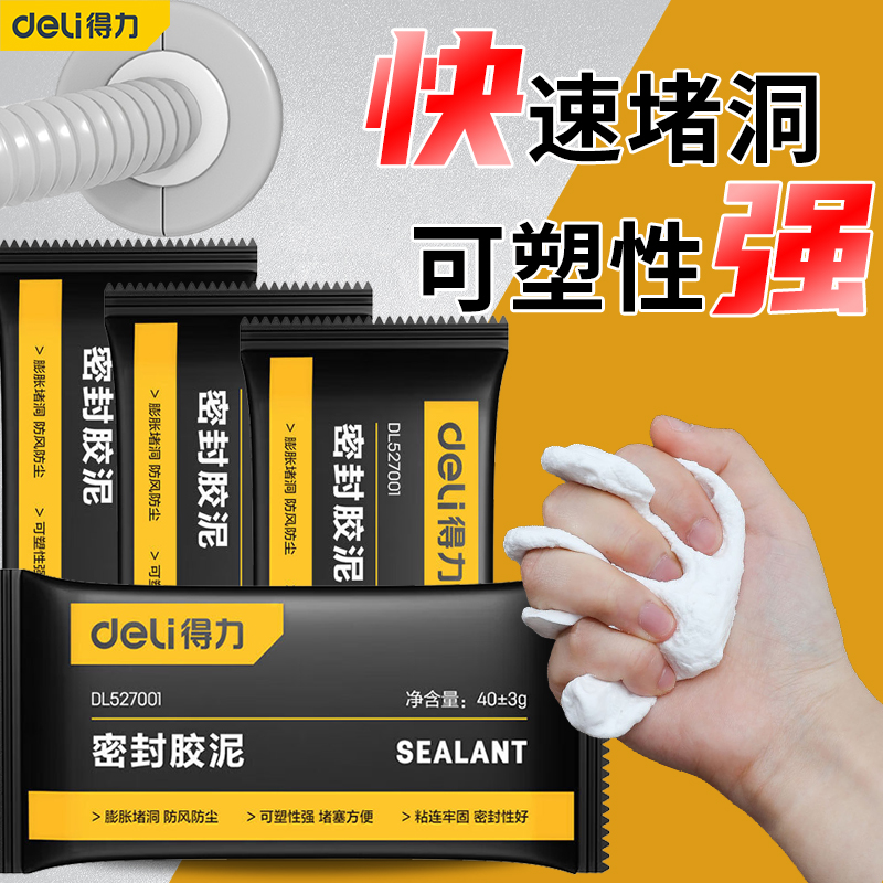 得力下水道密封胶泥空调孔洞堵塞填F充神器密封泥家用堵洞防火防