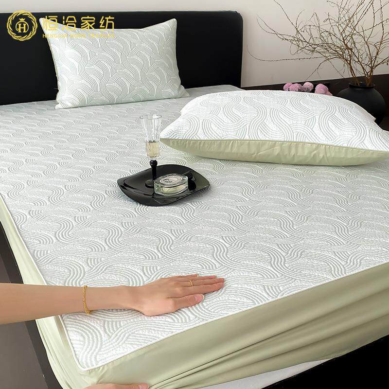 2024热款冰豆豆提花凉席套件可折洗叠空调软席床笠款直播爆款