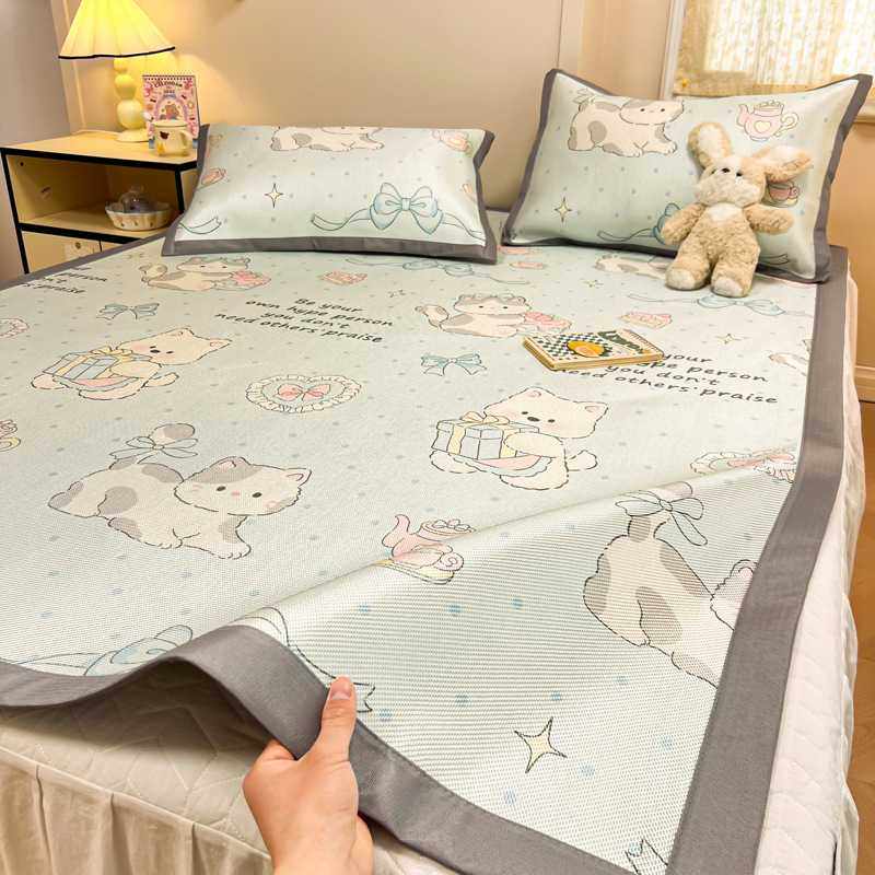 精选韩系博主风冰丝凉席三件套卡通数码印花可水洗机洗夏季空调席