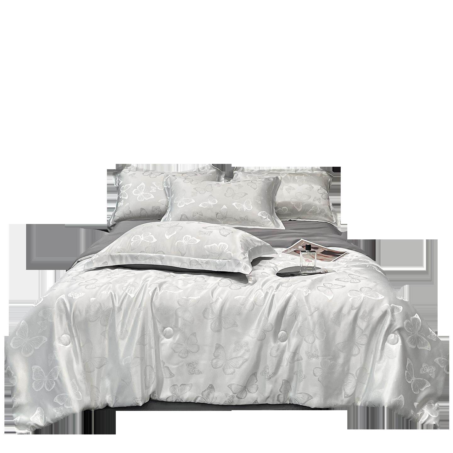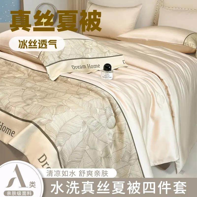 轻奢冰丝夏凉被四件套高端床品薄被子水洗真丝空调被夏季天可机洗