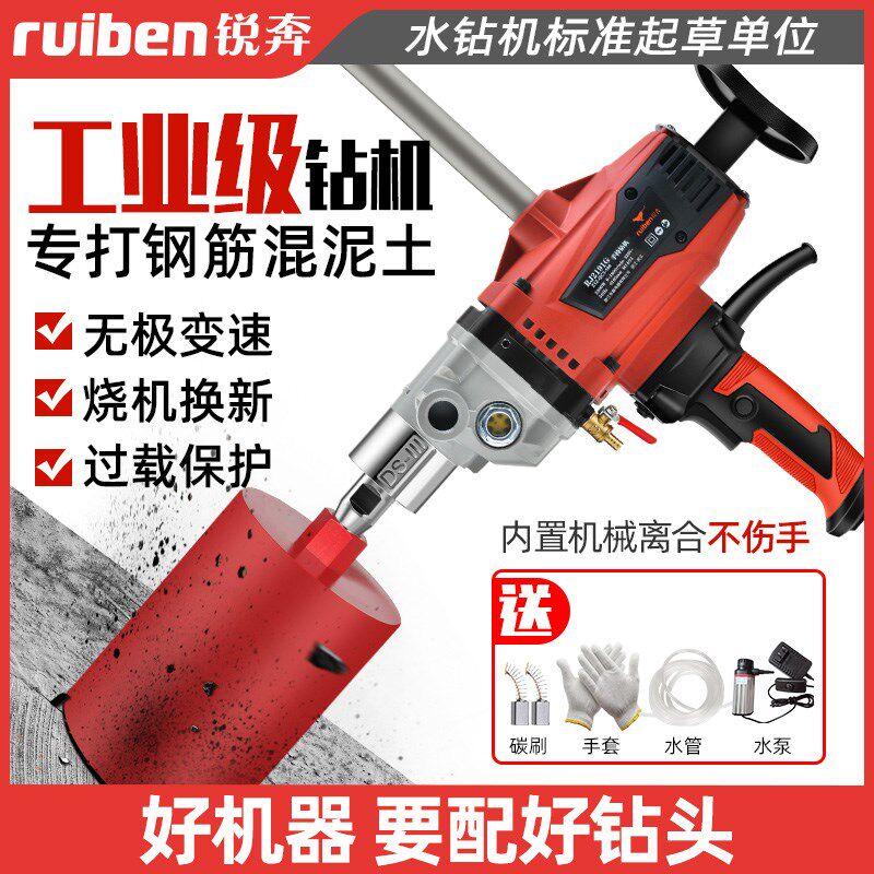锐奔水钻机大功率钻孔机混凝土开孔机空调手持台式两用水钻打孔机