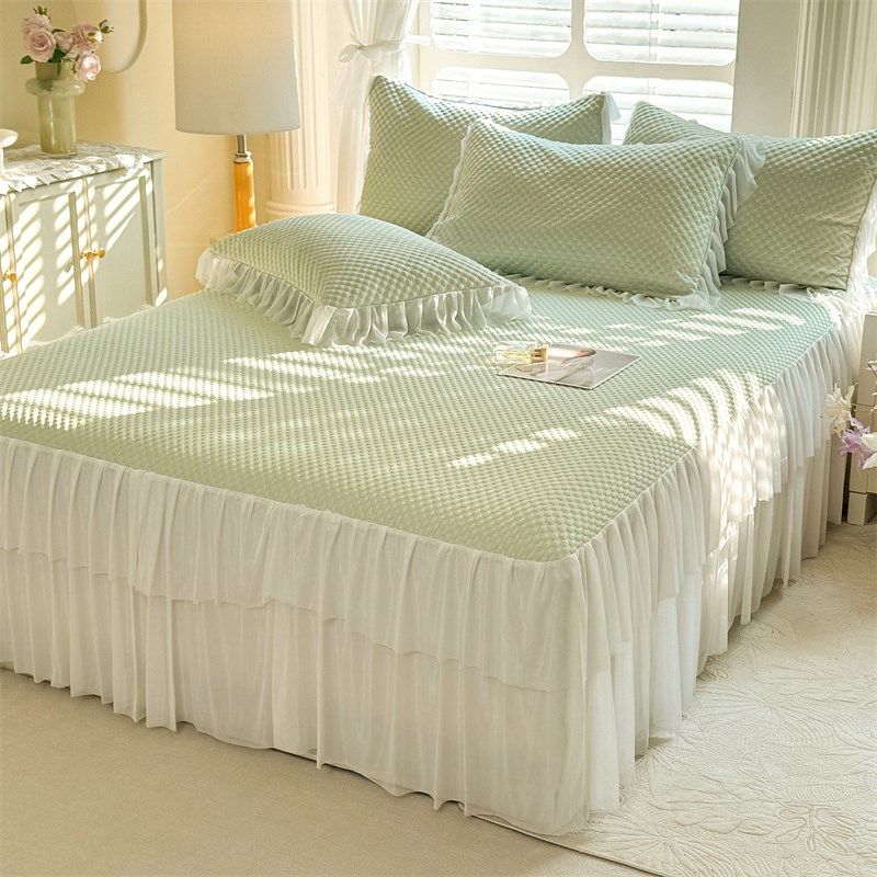 床裙款冰丝凉感豆豆凉席三件套空调软席子可水洗机洗折叠夏季床罩