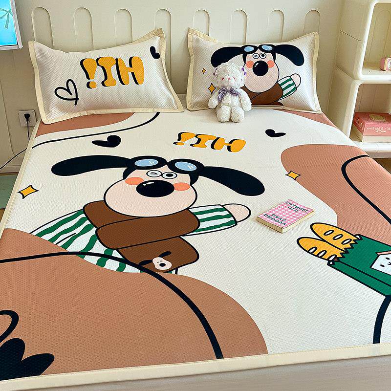 A类夏季乳胶冰丝凉席夏被四件套床裙款可机水洗空调软席子三件套