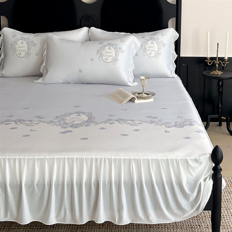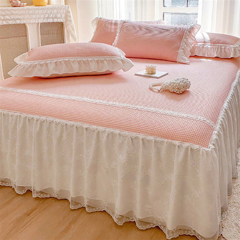 精选2025新款夏季公主风冰丝凉席三件套床裙花边凉感可机洗空调软
