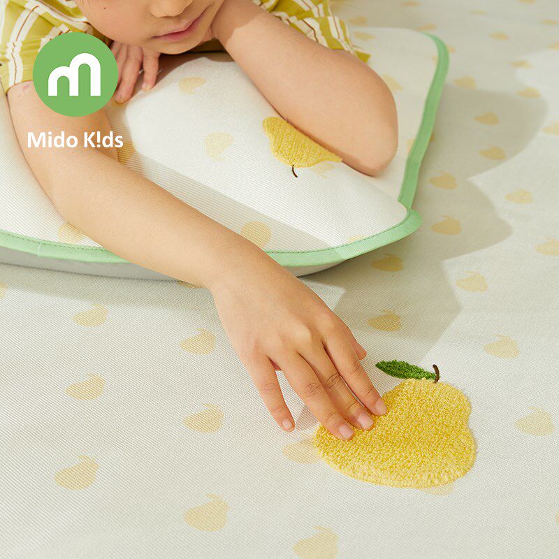 儿童冰丝凉席三件套床笠款空调软冰席夏季可折叠凉感席子黄澄澄梨