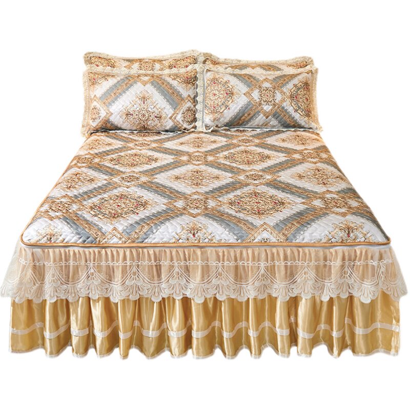 精选夏季床裙款冰丝凉席可机洗冰丝席三件套加厚防滑床罩折叠空调