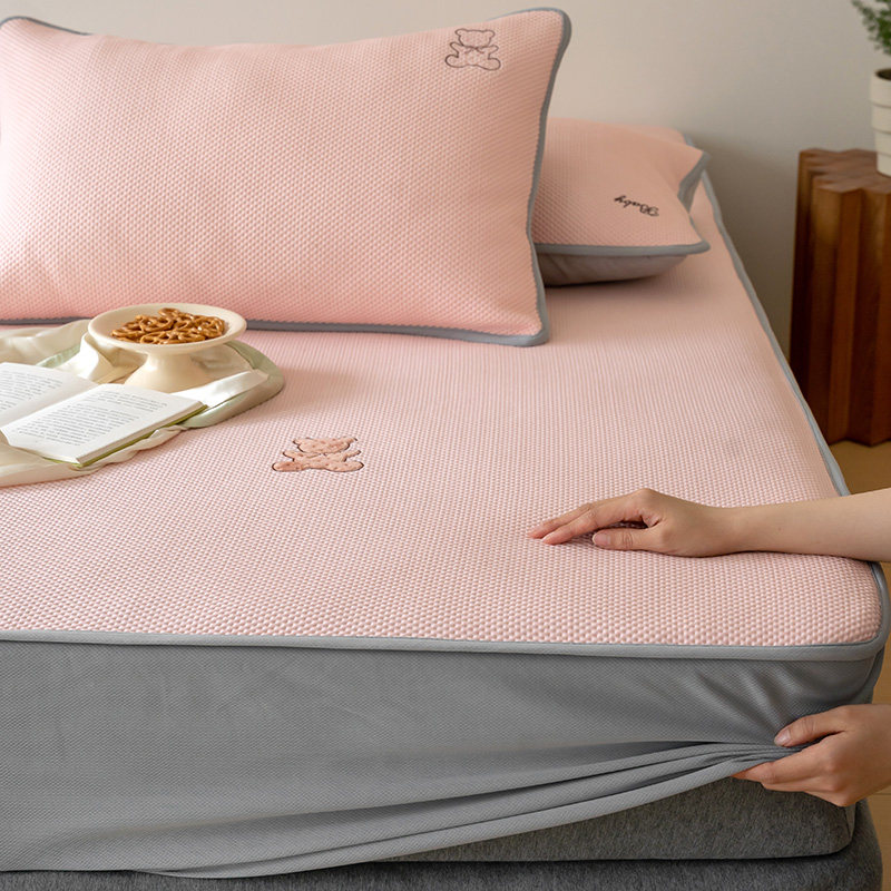 卡通刺绣冰丝床笠凉席三件套空调席子夏季凉感可折叠席梦思保护套