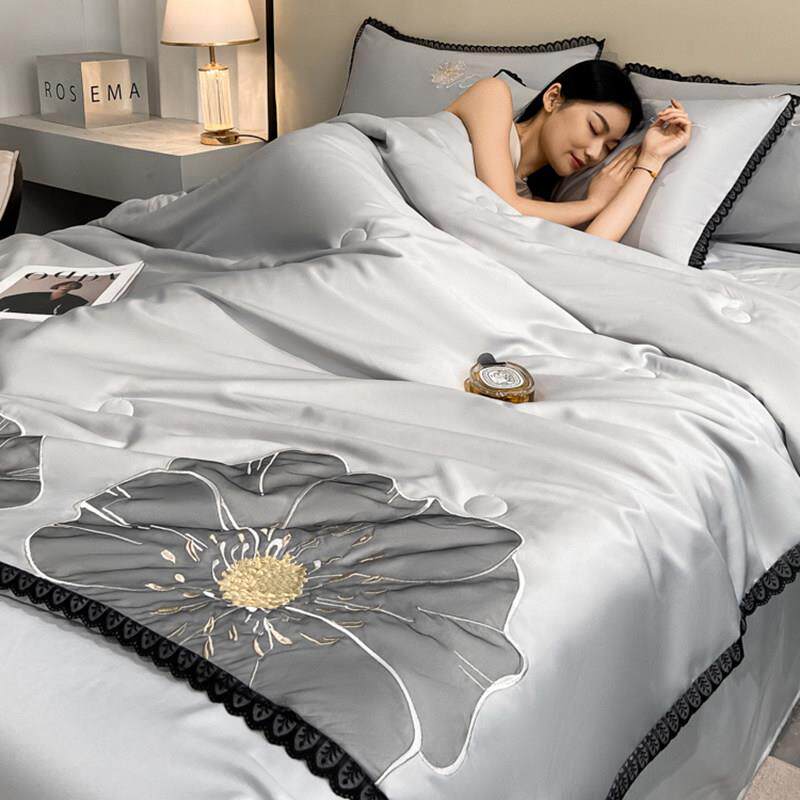 轻奢刺绣空调被四件套冰丝床笠水洗真丝夏凉被夏被薄款被子可机洗