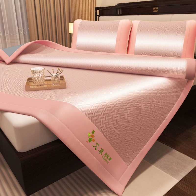 夏季艾草驱蚊加厚凉席冰丝席学生宿舍两三件套藤席子可折叠空调席