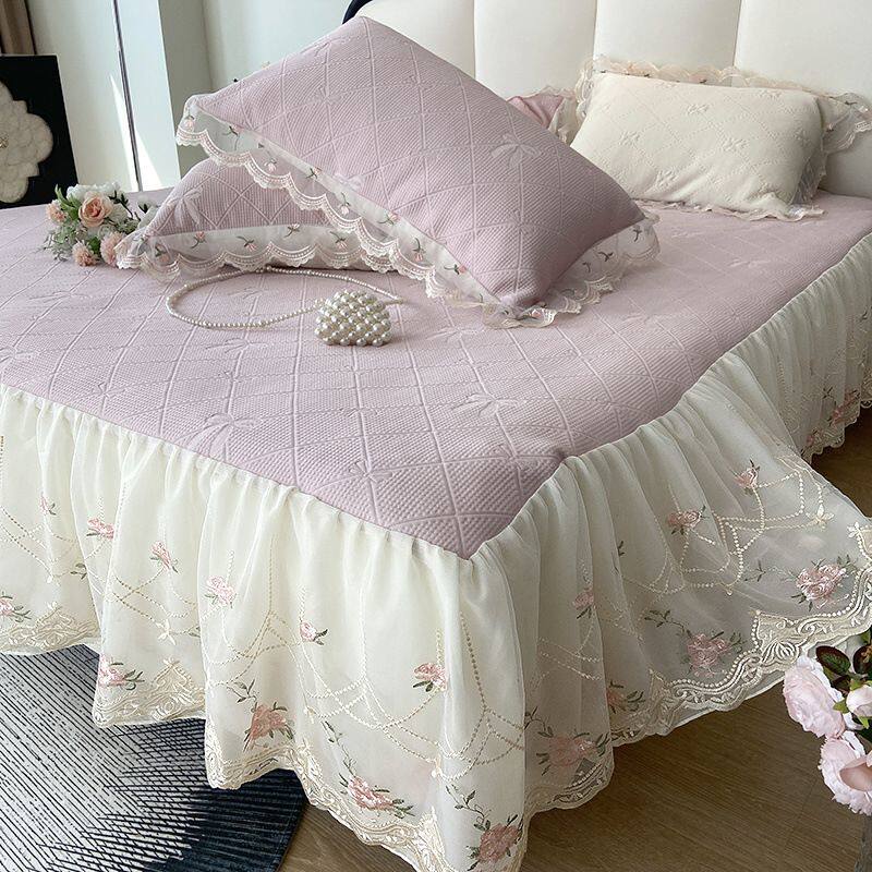 夏季新款冰丝席三件套床裙款蕾丝花边可机洗折叠1.8米床笠空调凉