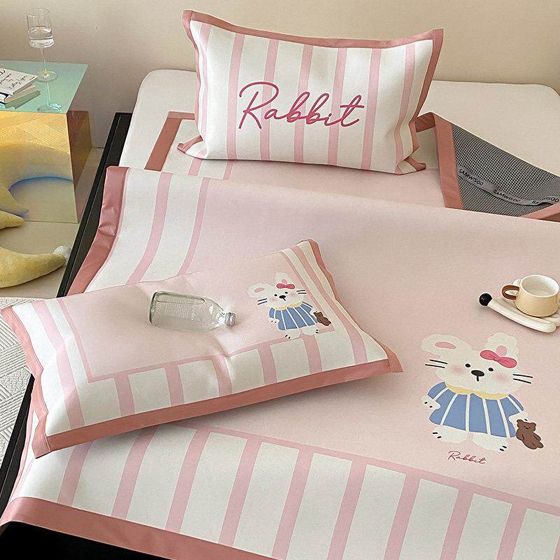 可爱女孩子夏季冰丝席凉席三件套可机洗裸睡空调席子新款床上用品
