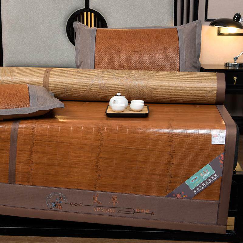 夏天冰丝凉席h三件套夏季可机洗折叠空调软凉席单双人床【送枕套