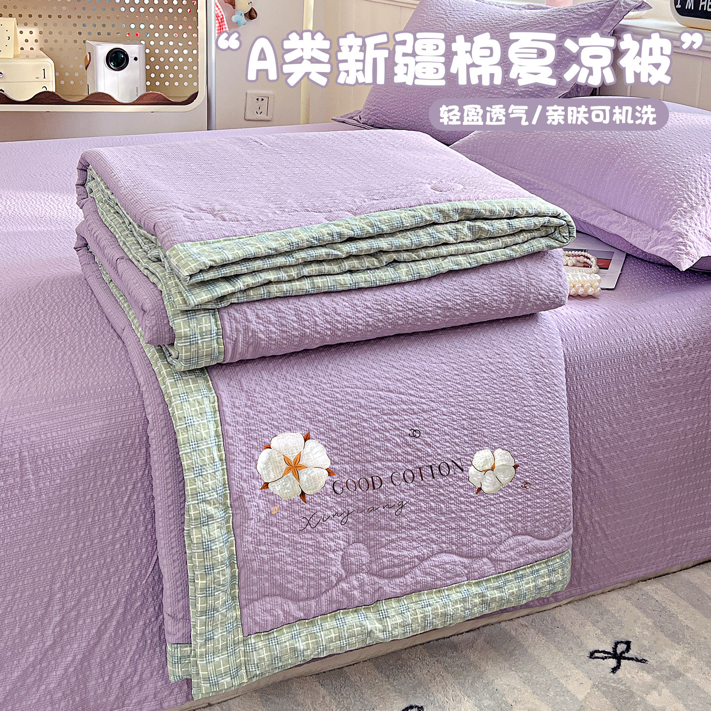 A类夏季夏凉被四件套纯棉全棉可机洗空调被双层纱学生宿舍用薄被3