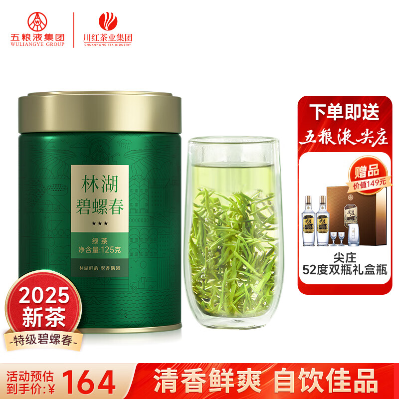 川红2025明前新茶特级碧螺春绿茶 盒装茶叶 送尖庄礼盒(送礼款) 125g*1盒
