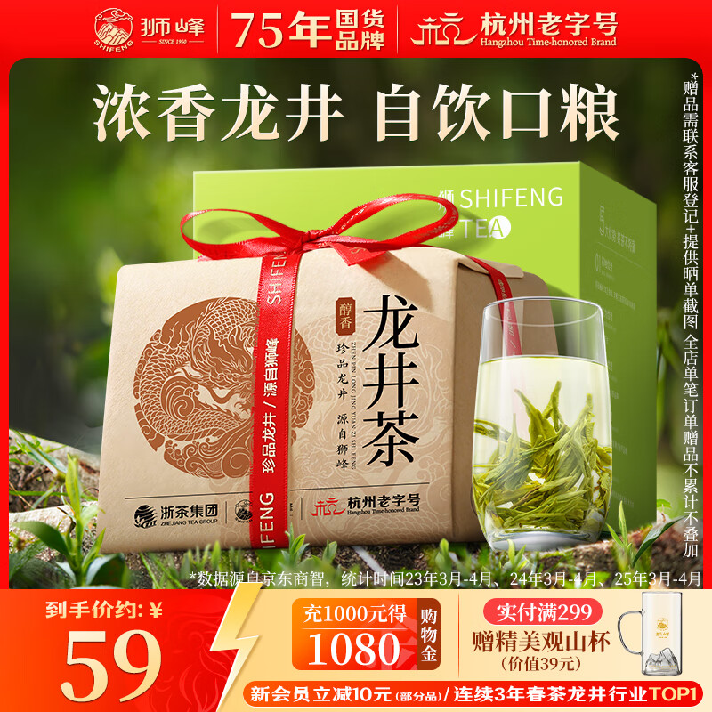 狮峰牌2025年新茶绿茶雨前龙井茶叶春茶四级250g纸包送礼自饮自己喝