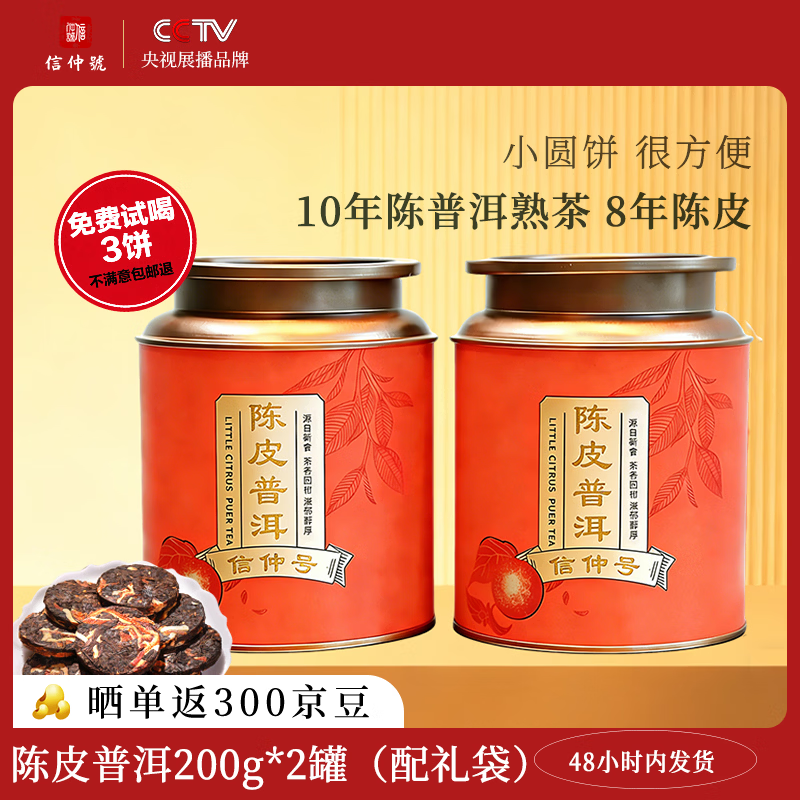 信仲号普洱茶勐海陈皮普洱 8年陈皮10年普洱紧压茶小圆饼便携装茶叶 陈皮普洱 独立小圆饼 配礼袋 200g*2罐