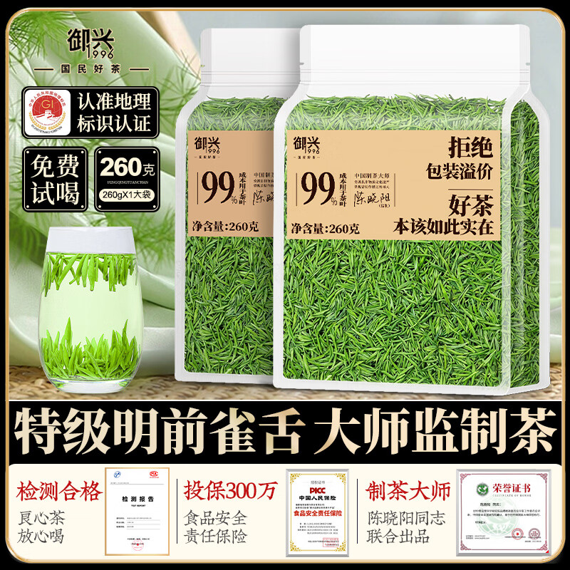 御兴新茶早春头采特级雀舌 浓香型高山嫩芽绿茶 袋装茶叶260g送礼