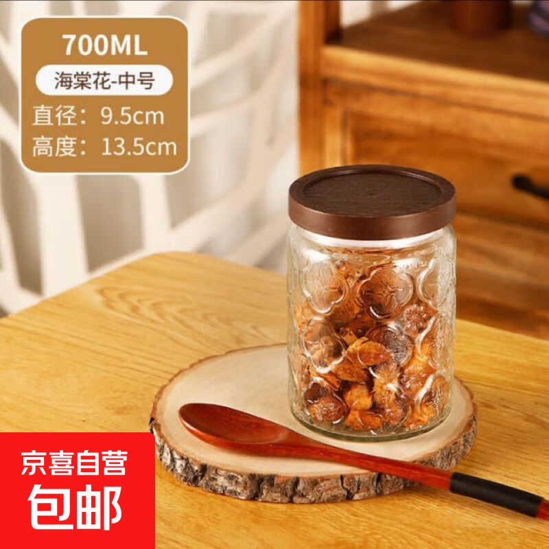 复古太阳花玻璃储物茶叶罐坚果干果密封罐厨房家用收纳食品级罐子 中号海棠花【一只装活动款】 700ml