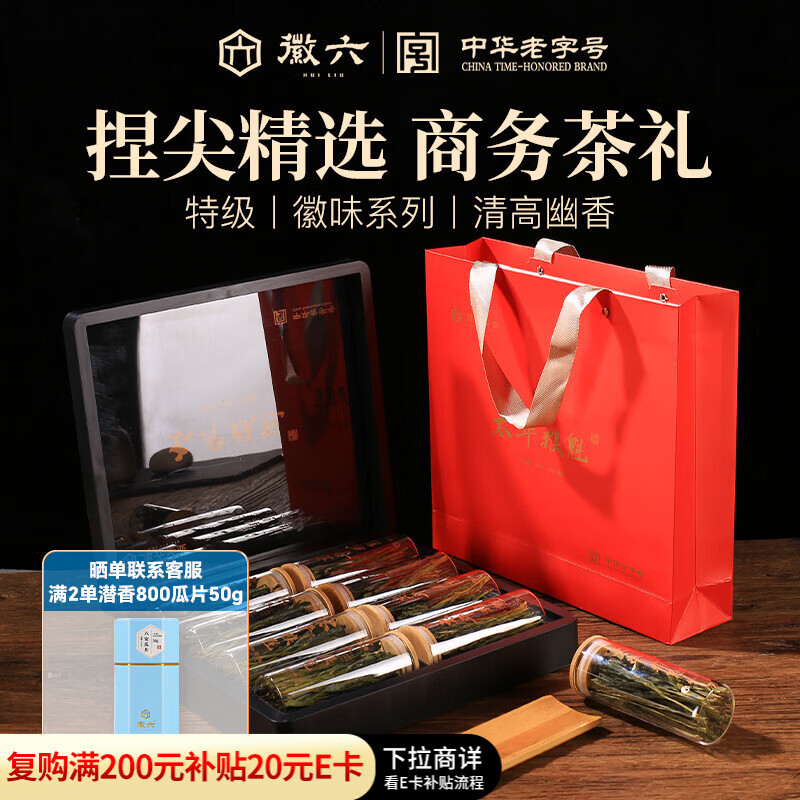 徽六绿茶太平猴魁茶叶礼盒120g徽味特级2025新茶手工捏尖春节送人礼品